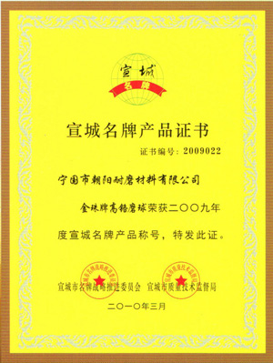 宣城名牌產(chǎn)品證書